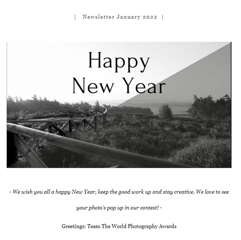 Vermelding in de nieuwsbrief van The World Photography Awards Januari 2022: